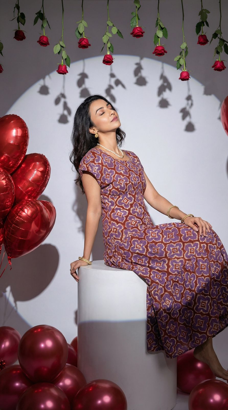 Twirl into any celebration in this stunning red batik frock! Featuring vibrant floral patterns that dance across the fabric, this dress brings traditional artistry to modern elegance. Perfect for weddings, festivals, and special occasions, it combines comfort with timeless style. The rich red hue makes a bold statement while the intricate batik design adds authentic charm. Whether you're attending a formal event or a festive gathering, this frock ensures you'll stand out with grace and personality.